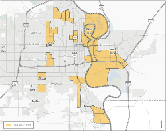 According to the USDA “a residence is considered in a food desert if it is more than one mile from a supermarket in an urban or suburban areas and more than 10 miles from a supermarket in a rural areas”.