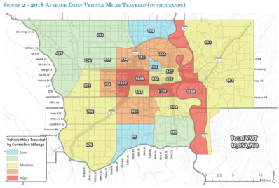 We can determine the current number of trips as \[T_i = 250 \times 2.5 + 250 \times 6.0 = 2125 \text{ trips/day}\]