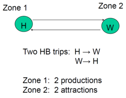 • Production & attraction approach works fine when dealing with 24-hour work trips