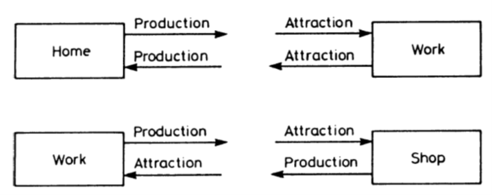 • Trip production: defined as the home end of an HB trip or as the origin of an NHB